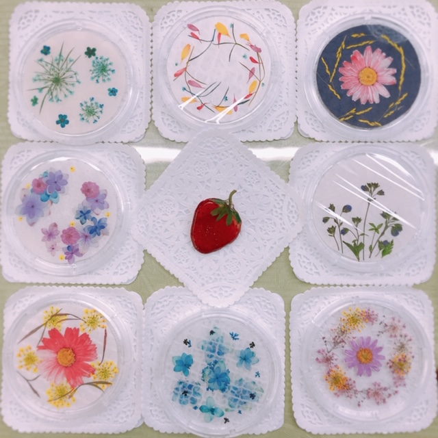 押し花コースター 種類指定不可 押し花柄のコースターです。 冷たい飲み物を入れたコップの下敷きにお使いいただけます。 来客時のおもてなしに最適です。 ※種類の指定はできません ※天然素材の為、形や色に違いがございます サイズ(約 投稿日 19年8月6日 1DAYレッスンで大人気のフラワーコースター! ガラスベースに押し花を樹脂でコーティングして制作します。 透明感があり、キラキラと美しく今の時期にぴったりです。 お好きな押し花をお選びいただけます。 枚数分同じ花材&同じ